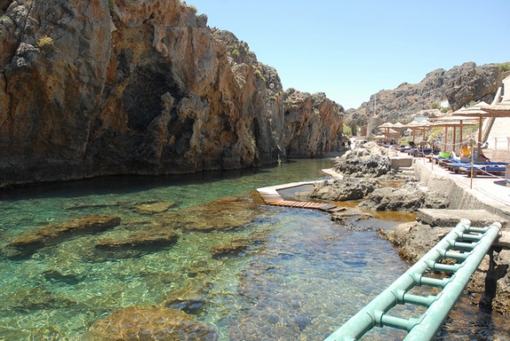 Pirates Fjord - Πειρατικό Φιόρδ - the tiny yet deep sheltered harbour in southern Crete is named 'Pirates' Fjord' and made a great hiding spot for a boat in those violent times. Today the rocks are landscaped and umbrellas line the shore, and modern pirates receive a warm welcome at the hotel just metres from the beach.